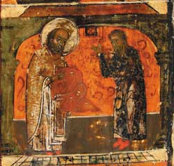 Een ikoon uit de verzamenling van het Ikonenmuseum in Kampen.Deze imposante kerkikoon is een van de ikonen die deel uitmaakt van de collectie van de Alexander Stichting en die ter gelegenheid van de Nikolaastentoonstelling in het Ikonenmuseum is getoond.